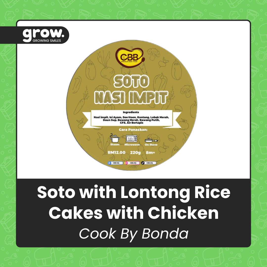 Soto with Lontong Rice Cakes features tender chicken and vermicelli in a flavorful broth with potatoes, carrots, and aromatic herbs. This comforting dish offers a delicious and hearty meal with the unique texture of compressed rice.